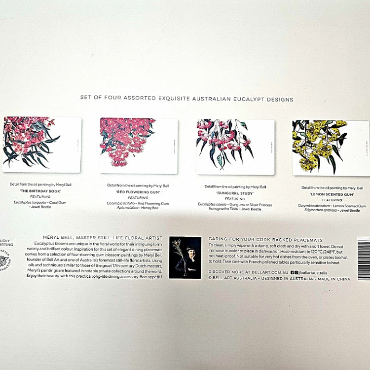 Set of 4 generously sized cork backed placemats featuring Australian native flora.